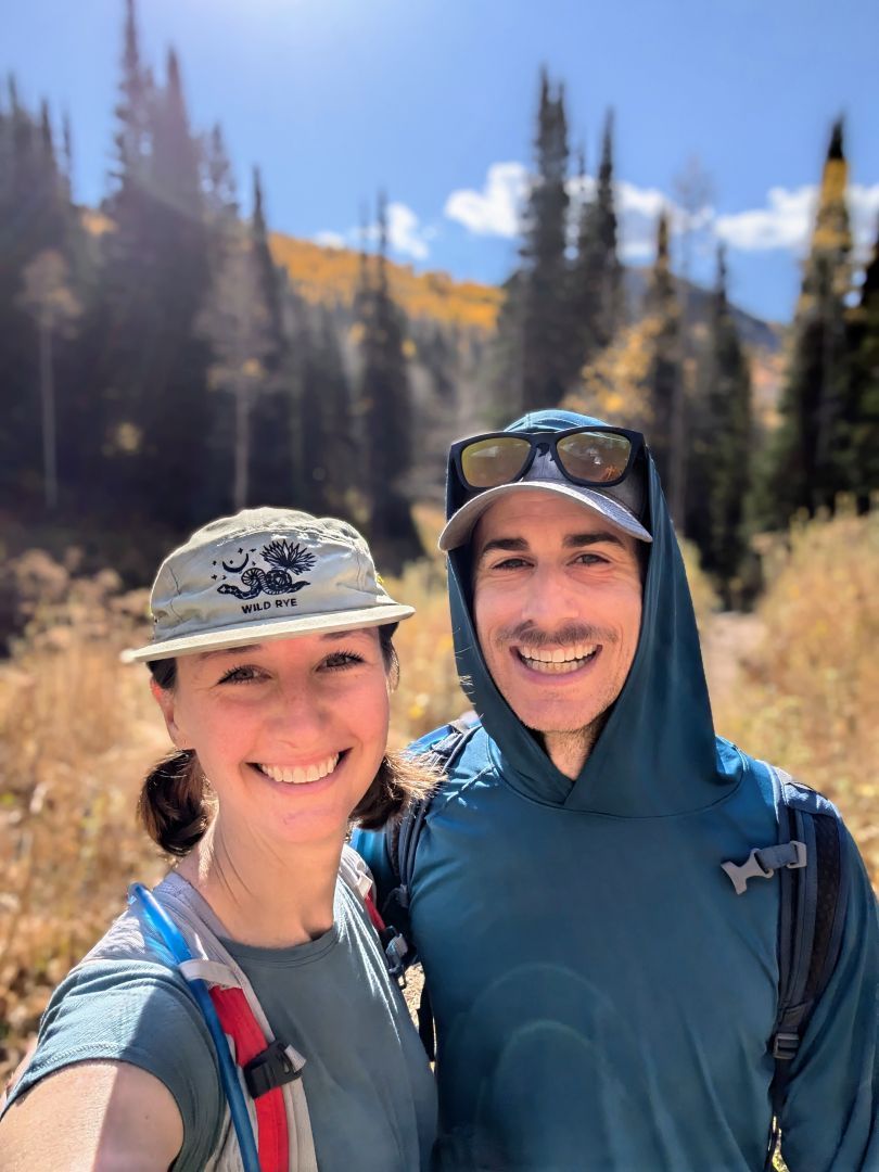 Hi! We’re Laura and Ryan — two very outdoor enthusiasts who prefer fresh air and winding trails, even if we don’t always know what we’re doing. Our hiking gear is mismatched, our bikes are probably making noise and we love a good snack. Also joining us is Matilda, our tiny dachshund mix with big opinions and little patience for poor navigation.